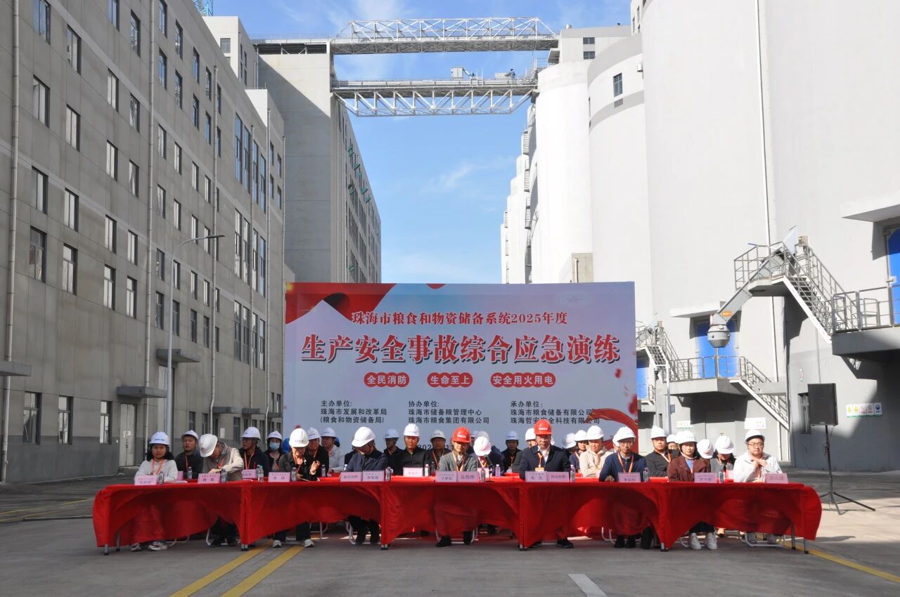 為深入貫徹落實(shí)習(xí)近平總書(shū)記關(guān)于安全生產(chǎn)的重要指示精神,切實(shí)筑牢糧食和物資儲(chǔ)備安全防線,全面提升糧食和物資儲(chǔ)備行業(yè)突發(fā)事件應(yīng)急處置能力,2025年11月28日,由珠海市發(fā)展和改革局主辦,珠海市儲(chǔ)備糧管理中心、珠海糧食集團(tuán)承辦的“2025年珠海市糧食和物資儲(chǔ)備系統(tǒng)生產(chǎn)安全事故綜合應(yīng)急演練”在珠海中心糧庫(kù)圓滿舉行。市發(fā)改委黨組成員、副局長(zhǎng)王夢(mèng)陽(yáng),珠海農(nóng)控集團(tuán)黨委委員、副總經(jīng)理祝杰,市儲(chǔ)備糧管理中心主任李錦鎮(zhèn)等現(xiàn)場(chǎng)觀摩指導(dǎo),全市各區(qū)糧食系統(tǒng)相關(guān)負(fù)責(zé)人、安全管理人員及一線作業(yè)人員代表共100多人參與演練。